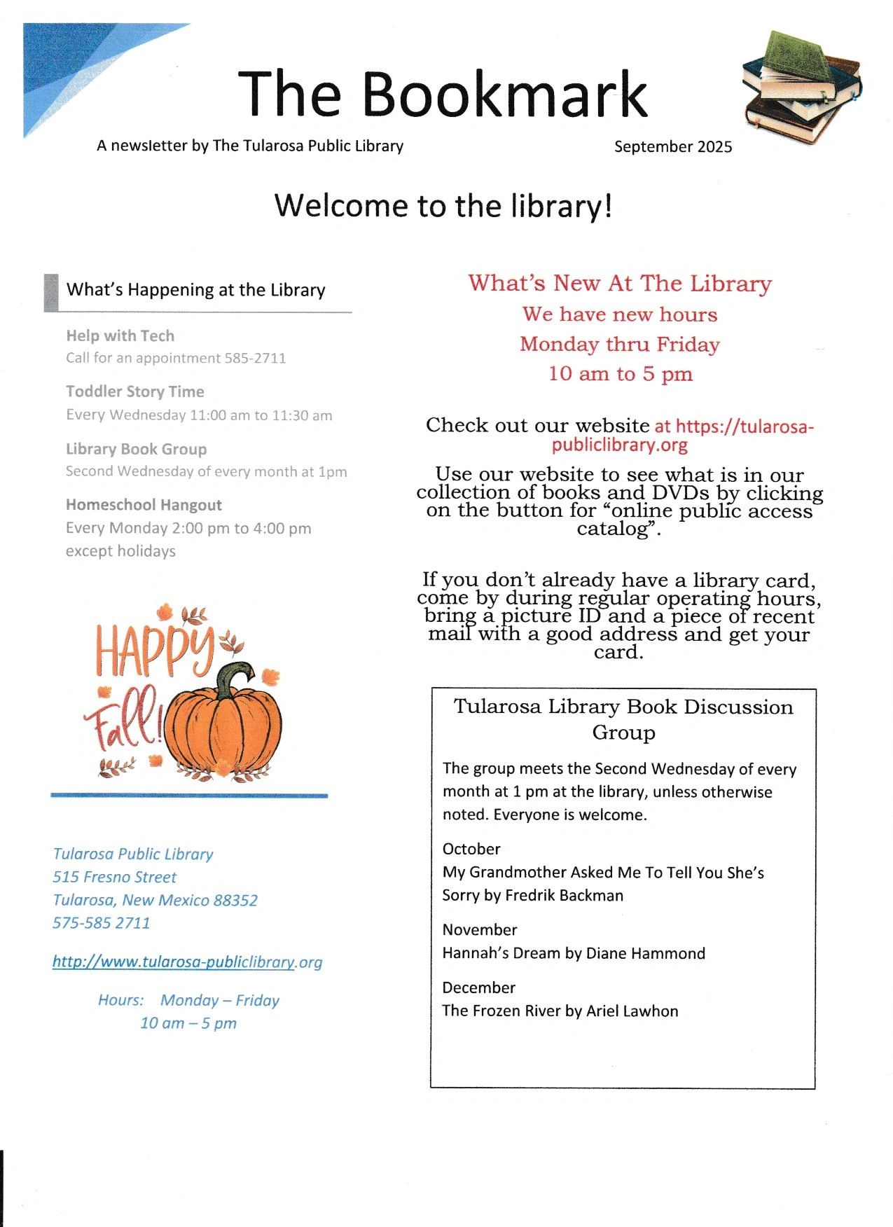 Copyright © 2025  Tularosa Public Library - All Rights Reserved.